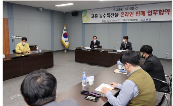 고흥군과 농업회사법인 (유)감동이 고흥 농수산물의 온라인 시장 확대를 위해 뜻을 같이 하기로 했다.