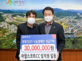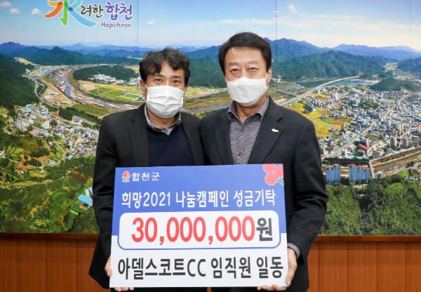 합천군 가야면 성기리에 위치한 아델스코트CC(대표 이종훈)는 8일 합천군청을 방문해 이웃돕기성금 3천만원을 기탁했다.
