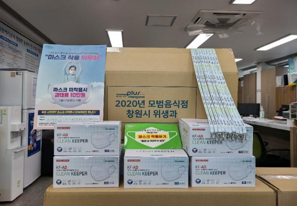 시는 재지정 모범음식점에 대해 코로나19 예방을 위하여 인센티브로 방역마스크 및 마스크 스트랩(줄)를 모범음식점 아웃박스에 담아 제공했다.