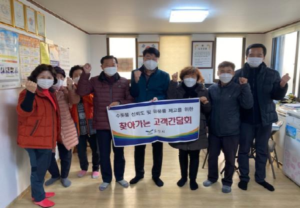 간담회 주요 내용은 ▲지방상수도 현대화 사업 추진 경과 보고 ▲수돗물 안심확인제 홍보 ▲녹물없는 우리집 수도관 개량사업 설명 ▲고객만족도 설문조사 ▲건의사항 청취 등이다.