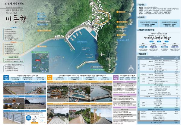 이번 공모에는 전국 250여 개소가 신청하였으며 통영시에는 용남면 동부항(지도)과 산양읍 마동항 2개 어항이 ‘어촌뉴딜300 사업대상지’로 최종 선정 됐다.