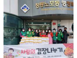 청룡노포동 새마을부녀회가 정성 들여 담근 김치는 홀로 어르신 등 관내 저소득 가구 72세대에 전달됐다.
