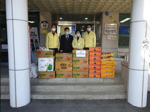 음성군 생극면에 위치한 건설업체인 대덕종합건설㈜(대표 김기명)에서 음성군 보건소를 방문해 코로나19 확산 방지를 위해 사투를 벌이고 있는 직원들을 격려하기 위해 치킨 150인분, 귤 12박스, 바나나 6박스, 음료 등의 간식을 전달했다고 10일 밝혔다.