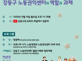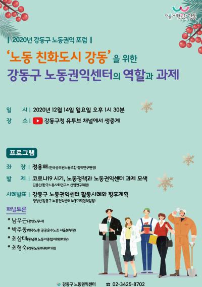 강동구가 오는 14일 오후 1시 30분~3시 30분 ‘노동친화도시 강동을 위한 강동구 노동권익센터의 역할과 과제‘를 주제로 노동권익 포럼을 온라인 개최한다.