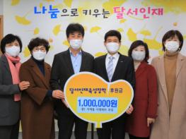 대구 달서구는 지역을 사랑하는 모임(회장 지용수)에서 지난 7일 지역 인재육성을 위해 써달라며 (재)달서인재육성장학재단에 후원금 100만원을 전달했다고 밝혔다.