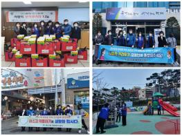 이날 사랑의 부식 나눔 봉사활동 후에는 한빛공원과 연동시장 일원에서 코로나19 방역 및 사회적 거리두기 캠페인을 펼쳤다.