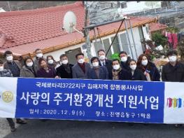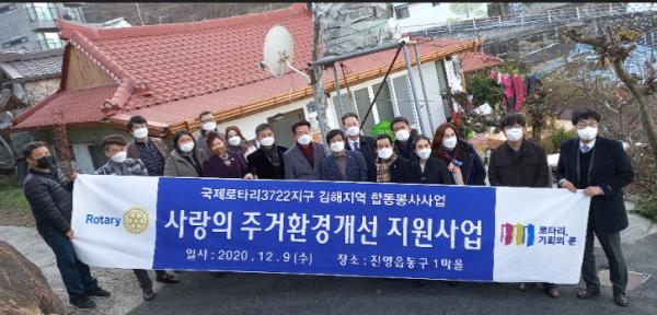 진영읍행정복지센터(읍장 김우곤)와 3722지구 진영로타리클럽(회장 제해준)은 어려운 독거노인들에게 꿈과 희망을 전하기 위해 회원들의 회비와 성금 2,000만원으로 주거환경이 열악한 거동불편 어르신 3가구에 ‘헌집을 새집으로 개조하는 집수리 사업’을 추진하여 주위로부터 잔잔한 감동을 일으키고 있다.