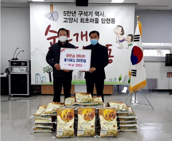 고양시 일산서구 탄현동(동장 박상원)에서는 지난 9일 막창일번지(대표 김성연)로부터 어려운 이웃들을 위한 나눔으로 사랑의 쌀 10kg 30포를 전달받았다고 밝혔다.
