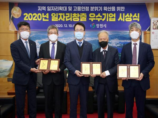 창원시는 10일 접견실에서 코로나19 여파로 어려운 경제여건에도 불구하고 지역의 일자리창출을 위해 노력한 3개 기업을 ‘2020년 일자리창출 우수기업’으로 선정하고, 표창패를 수여했다고 밝혔다.