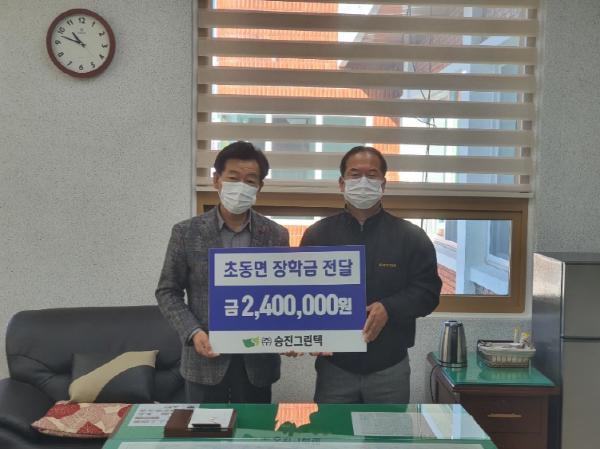 밀양시 초동면 금포리 소재 ㈜승진그린텍(대표 양성완)이 주관하는 ‘승진장학회’는 10일, 초동면행정복지센터를 방문해 지역 우수인재 양성을 위한 장학금 240만 원을 전달했다.