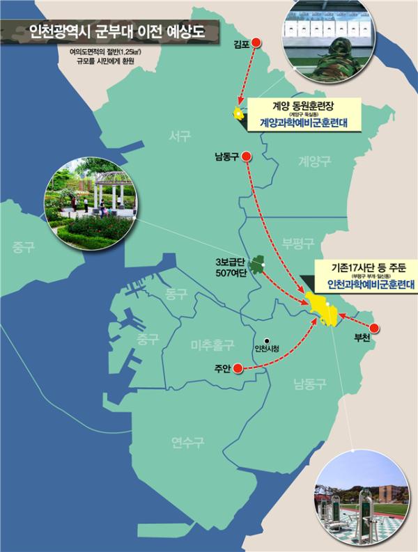 인천광역시는 지난해부터 시작된 국방부의 인천지역 군부대 재배치사업과 연계한 제3보급단 등 군부대 이전사업 추진을 위한 첫 단계인“기부 대 양여 이전협의 진행통보”를 국방부로부터 12월 4일 통보 받았다고 밝혔다.