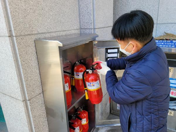 동은 지난 11월부터 관내 경로당 7개소와 초등학교 4개소, 행정복지센터 총 12개소에 소화기함을 설치하고 소화기도 비치했다.