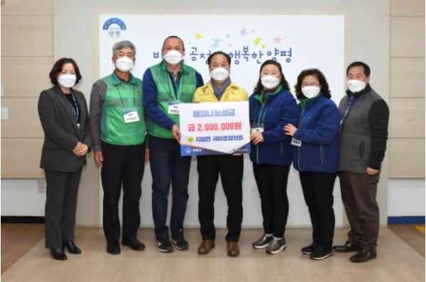양평군 지평면 새마을협의회가 ‘상부상조 정신을 바탕으로 지역 사회 발전을 도모하고 공익적 봉사 활동을 통하여 건강한 사회를 이루자’는 설립 취지에 맞춰 양평군에 해피나눔성금으로 2백만원을 기탁했다.