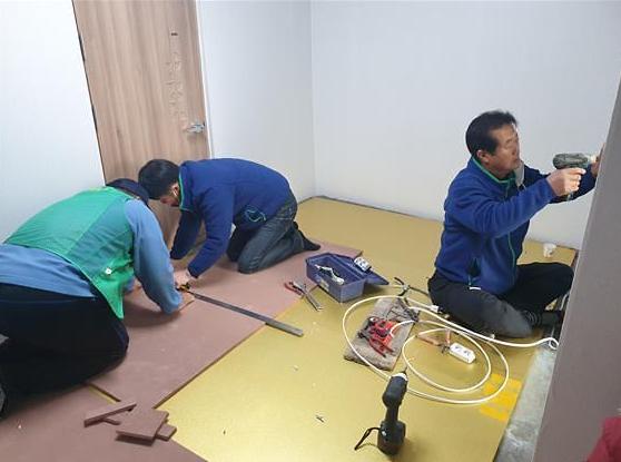 인산리에 거주하는 저소득 장애인 김 모 씨 댁은 5명의 식구가 살고 있다. 거의 허물어진 집에는 난방이 되는 작은 방이 두 개뿐이어서 겨울에도 난방이 되지 않는 사랑채의 방을 사용해왔다. 이에 양도면에서는 관내 저소득층 주거환경개선사업을 시행하는 러블리하우스의 에너지효율사업과 연계해 보온을 위한 벽체를 보완하고 방문을 새로 달았다. 하지만, 예산 부족으로 난방시설을 놓지 못했다. 이 소식을 접한 새마을지도자협의회는 지난 4일 재료를 직접 구입하고 지도자들이 가진 기술을 이용해 전기패널과 장판을 시공해 겨울에도 따뜻하게 이용할 수 있도록 방 한 칸을 마련했다.