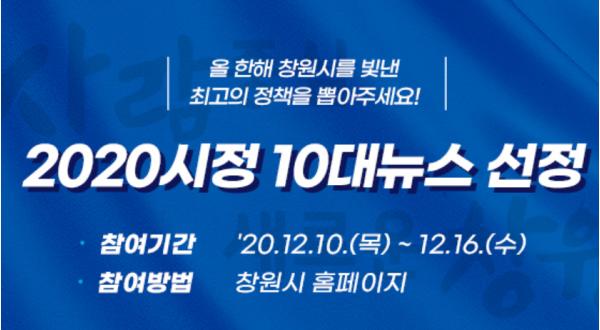 '2020년 창원을 빛낸 10대 뉴스’는 주요 시책, 성과 등을 바탕으로 30개의 주요 뉴스를 우선 선정, 온라인으로 오는 12월 16일까지 시민 설문조사를 통해 선정한다.
