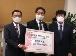 이날 기흥구 신갈동에선 용마로지스가 생계가 어려운 저소득 이웃에게 전해달라며 성금 500만원을 기탁했다.