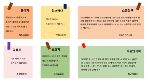 연상퀴즈 빈칸넣기에는 총 157명이 참여해 나에게 용인시정신건강복지센터란 ‘소통창구다’, ‘마음의 안식처다’, ‘터닝포인트다’ 등 뜻깊은 답변들이 모집됐다.