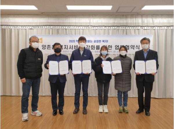 양촌읍 행정복지센터와 양촌읍 지역사회보장협의체는 지난 9일 어려운 시기에 지역복지를 통한 이웃 돌봄을 희망하는 빌트조명(주)·연세유병원과 업무협약을 체결했다고 밝혔다.