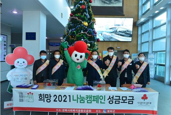‘희망2021 나눔캠페인’은 '나눔으로 희망을 이어주세요'라는 슬로건으로 12월 1일부터 내년 1월 31일까지 62일 간 진행되며, 봉화군청 주민복지실, 읍면사무소 주민복지팀, 경북사회복지공동모금회 등을 통해 참여 가능하다.