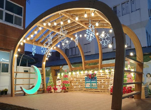 작년 이맘 때 즈음엔 읍내 사거리가 화려한 조명으로 빛났으나 올해는 ‘LPG 배관망 구축 사업’과 ‘교통사고 잦은 곳 개선사업’등으로 조명 공사를 착수하지 못했다. 이에 남해군 도시재생센터는 남해읍 행정복지센터 무대에서 조촐하게나마 크리스마스 분위기를 느낄 수 있도록 이벤트 공간을 마련했다.