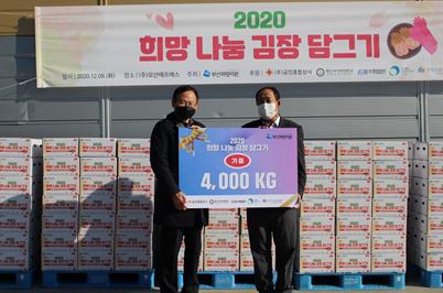 매년 부산시청 녹음광장에서 대한적십자사 등 봉사단체와 김장담그기 행사를 시행하였으나, 금년에는 코로나19 여파로 전문업체를 통해 생산된 김장김치 5kg짜리 800상자를 조합의 직원들만으로 포장 작업하여 지역 내 홀로 사는 어르신과 장애인 세대, 모자원 등 김장을 담그기 힘든 저소득 취약가정 및 시설에 비대면 시차제 전달과 택배방식으로 전달하였다.