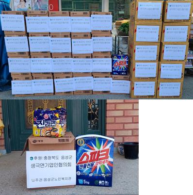 생극면 기업협의회는 2017년 음성군노인복지관과 연계하여 난방유지원을 시작으로 매달 정기적 후원을 통하여 생극면지역 취약한 어르신들에게 후원물품을 전달하고 있다. 금년에는 170만원 상당의 세탁세제와 라면 멀티팩을 전달, 사랑 나눔을 실천하였다.