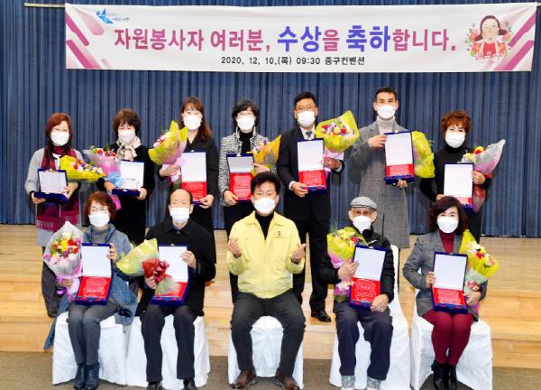 중구는 10일 오전 9시 30분 청사 2층 중구컨벤션에서 박태완 중구청장과 자원봉사 유공 대상자와 유공 단체 대표 등 10여명이 참석한 가운데 표창패 수여식을 가졌다.