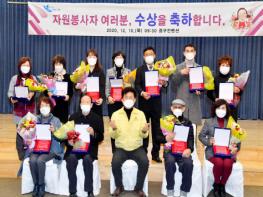 개인 가운데는 이영희 씨와 이택명 씨, 생활공감정책 모니터봉사단 김정숙 회원이 재능나눔을 통한 수제마스크 제작 등의 활동으로, 행복나눔봉사단 서민혁 단장과 문수나누미봉사단 박태순 대외국장 등이 코로나19 예방을 위한 방역활동 등의 공로로 유공 표창을 수상했다.