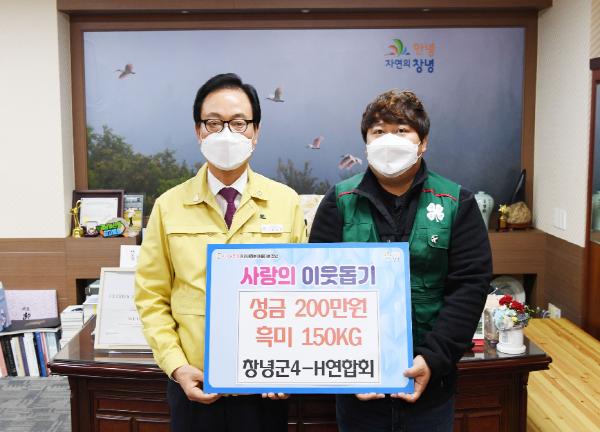 창녕군은 지난 10일 창녕군4-H연합회(회장 남기길)가 연말 이웃들과 훈훈한 정을 나누기 위해 이웃돕기성금 200만원과 흑미 150㎏을 기탁했다고 밝혔다.