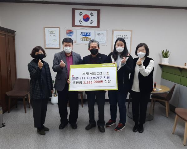호평제일교회 시무 최윤진은 “어려운 상황을 함께 이겨내기 위해 기부하게 되었다.”며, “신도들의 작은 정성이 취약계층에 전해졌으면 좋겠다.”라고 말했다.