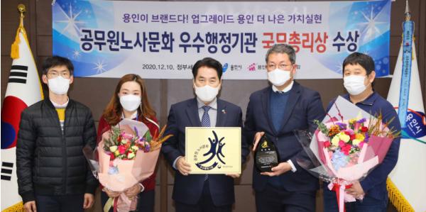 용인시와 용인시공무원노동조합이 '2020년 공무원 노사문화 우수행정기관 인증제 평가'에서 기초자치단체 부문 우수행정기관으로 선정돼 국무총리 표창을 수상했다고 11일 밝혔다.