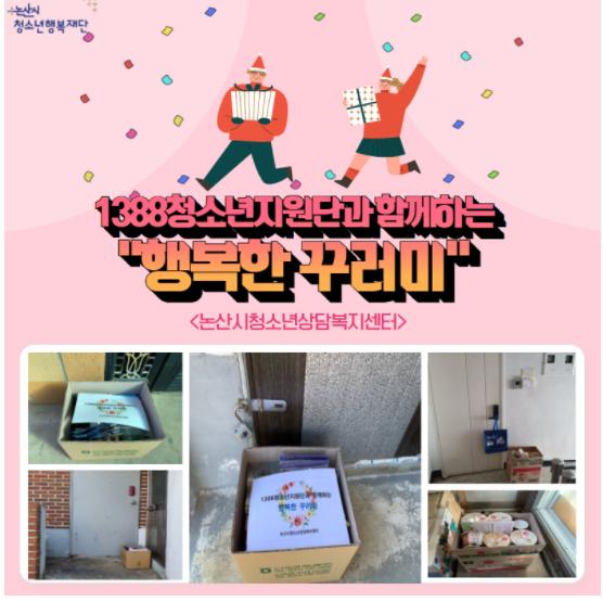 논산시청소년상담복지센터는 지난 11월 30일, 12월 9일 2회에 걸쳐 관내 30명 청소년 가정에 ‘1388청소년지원단과 함께하는 행복한 꾸러미’를 전달했다.