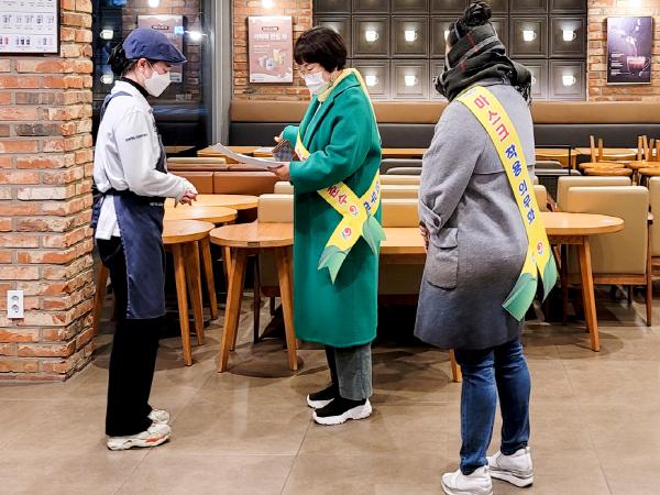 또한 ‘경상남도 사회적 거리두기 2단계 시행 행정명령’발령에 따라 달라진 방역수칙에 대해서 어깨띠 등을 활용한 거리 홍보를 실시하여 지역주민의 적극적인 참여를 독려하였다.