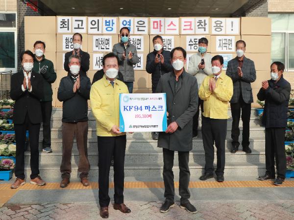 군은 11일 오전 10시 30분에 군청 광장에서 서춘수 함양군수를 비롯한 이장단 협의회와 전읍면장이 참석한 가운데 KF-94마스크 전달식을 가졌다.