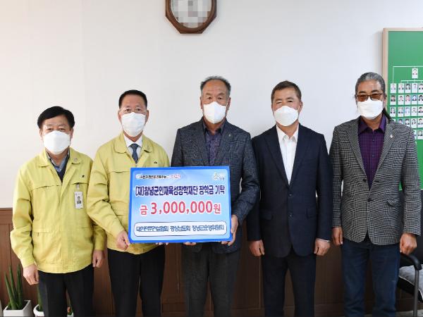 김성기 창녕군운영위원회장과 임원들은 이 자리에서 “지역의 우수한 인재육성과 교육발전에 조금이나마 동참하고자 회원들의 마음을 모아 창녕군인재육성장학재단에 300만 원을 기탁하게 됐다”고 말했다.