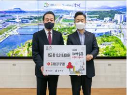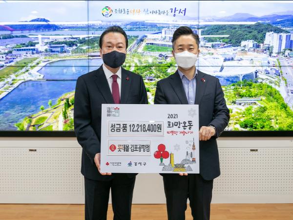 구는 11일(금) 오전 10시 30분 구청장실에서 롯데몰 김포공항점(이하 롯데몰)으로부터 '2020 희망온돌 따뜻한 겨울나기' 성금 610만8400원과 611만원 상당의 라면과 김치를 전달받았다.