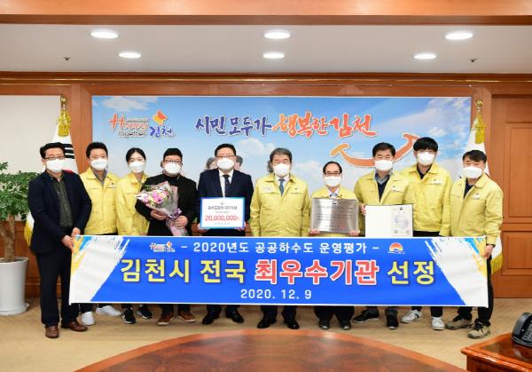 김천시는 환경부가 주관하는 “공공하수도 운영 ? 관리 실태평가”에서 지난 3년간 우수기관으로 연속 선정되었으며, 특히 올해에는 전국평가에서 최우수라는 쾌거를 이뤄 인증패와 시상금 2천만원을 수상했다.