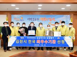 김천시는 하수도 안전관리 대응능력, 공공하수도 관리대행 효율화, 하수도 악취저감사업 추진 등 평가항목에서 가장 높은 점수를 받았으며, 시상식은 코로나19로 인한 공공기관 ?사회적 거리두기 2단계′ 적용으로 비대면(영상회의)으로 진행했다.