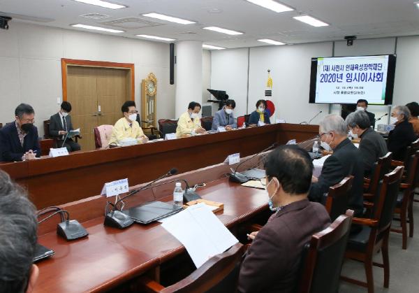 (재)사천시 인재육성장학재단(이사장 송도근 시장)은 지난 10일 사천시청 종합상황실에서 2020년 제30차 임시이사회를 개최하였다.