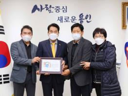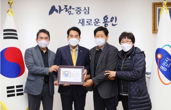백군기 용인시장이 11일 오후 시장실에서 지난달 도로 확장 공사가 마무리된 처인구 백암면 가창3리 주민들로부터 감사패를 받았다.