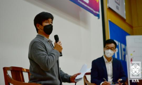 10일 오후 김용주 KFA 전력강화실 축구과학팀장의 진행으로 이뤄진 대담에서 정정용 감독은 스포츠사이언스와 관련된 자신의 철학을 밝히는 한편 한국축구를 위해 애쓰고 있는 전력분석관들을 위한 격려와 조언을 아끼지 않았다.
