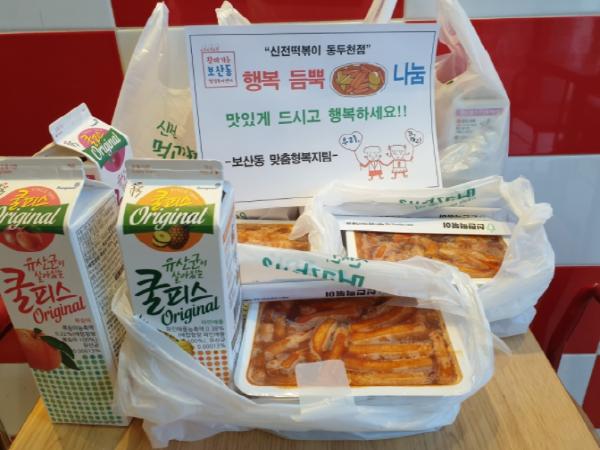 동두천시 보산동 행정복지센터는 지난 10일 신전떡볶이 동두천점(대표 최종진)의 후원으로, 보산동 저소득 가정의 아이들에게 떡볶이와 음료수를 전달했다고 밝혔다.