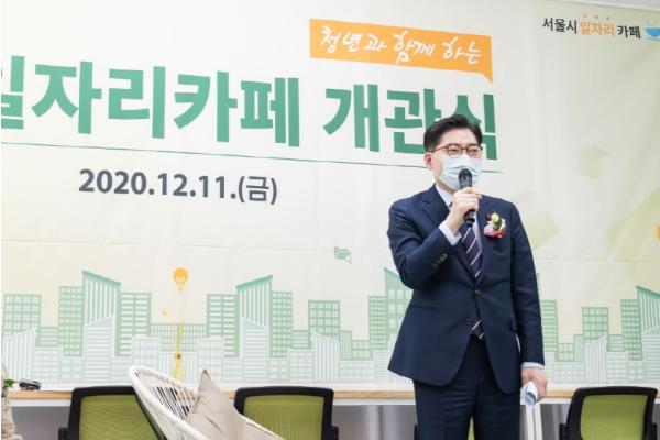 이정훈 강동구청장이 지난 11일 오후, 청년 취업을 종합 지원하는 강동일자리카페(강동구 올림픽로 797, 4층) 개관식에 참석했다. 강동일자리카페는 서울시가 직접 조성한 첫 광역형 일자리카페로, 강동의 청년들을 위한 진로·취업상담, 특강·멘토링 등을 지원하는 공간이다.