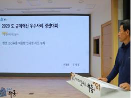 하동군은 지난 11일 경남도가 주관한 '2020 수사례 경진대회’에서 민생규제 분야 우수, 규제혁신 분야 장려 등 2개 부문을 수상했다고 14일 밝혔다.
