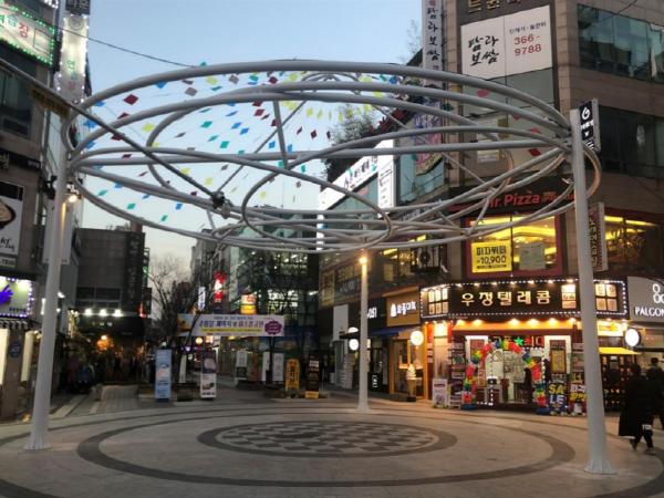 국민은행 앞 젊음의 거리 초입을 알려주는 지주형 사인몰을 시작으로 야간에 빛으로 젊음의 거리를 알리는 인포빔, 샵광장의 만국기를 형상화한 파고라형 조형물, 2차선 도로로 단절된 거리를 이어주는 지주형 사인몰, 스타광장 공연 개최 시 무대의 배경으로 활용 가능한 미디어월 뿐만 아니라 젊음의 아름다움을 간직할 수 있는 육각미러형 셀카포토존 및 액자프레임 포토존까지 젊음을 상징화한 각종 조형물들이 골목을 가득 채우고 있다.