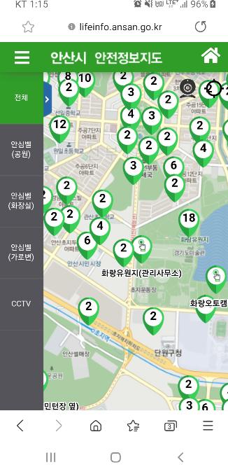 또한 생활정보지도 홈페이지의 안전정보(안산시 CCTV 및 안심비상벨위치)에 접속해도 동일한 서비스를 이용할 수 있다.