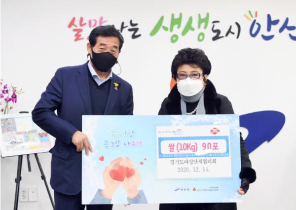 안산시는 14일 경기도여성단체협의회로부터 쌀 90포대(1포대 10㎏)를 기탁 받아 어려운 가정에 전달한다고 밝혔다.