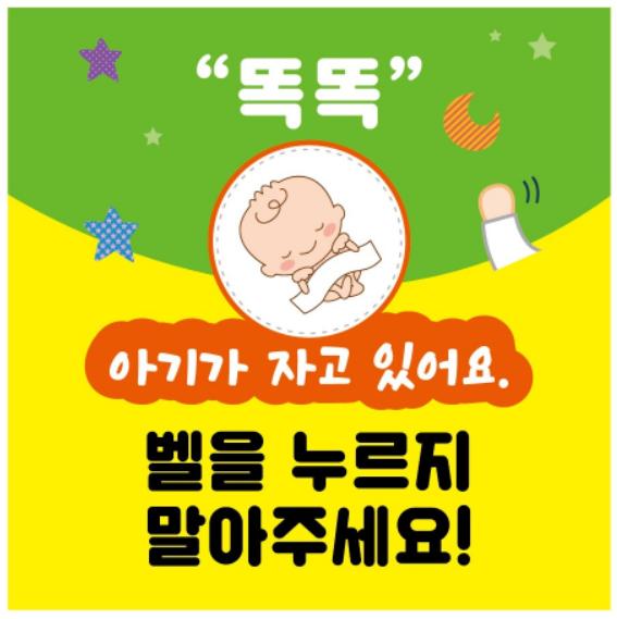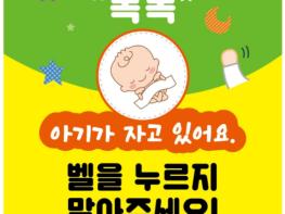 해당 스티커는 양육가정에 판매원, 택배기사 등 방문객이 초인종 대신 노크를 하도록 유도하여 신생아의 숙면환경과 부모의 휴식시간 보장에 기여할 것으로 보인다.