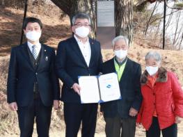 예천군 감천면 수한리 한티마을 북쪽 한티고개에 위치하고 있는 ‘예천 수한리 소나무’가 지난 10월 경상북도 지정문화재(기념물) 제180호로 지정된 가운데 문화재 지정서를 소유자인 안상진씨에게 전달했다.