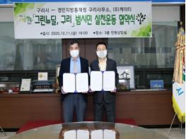이날 협약식은 2030년까지 구리시 온실가스 배출량 50% 감축 달성을 통한 저탄소 경제구조로 전환하면서 고용과 투자를 늘리는 '그린뉴딜, 구리' 목표 달성을 위한 범시민 실천운동 확산을 위해 마련되었다.